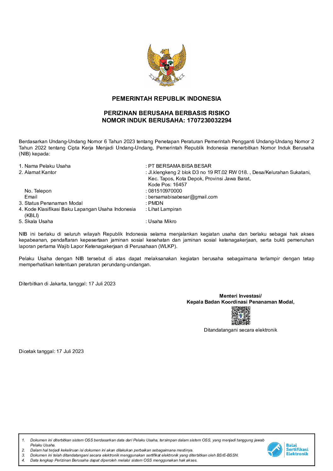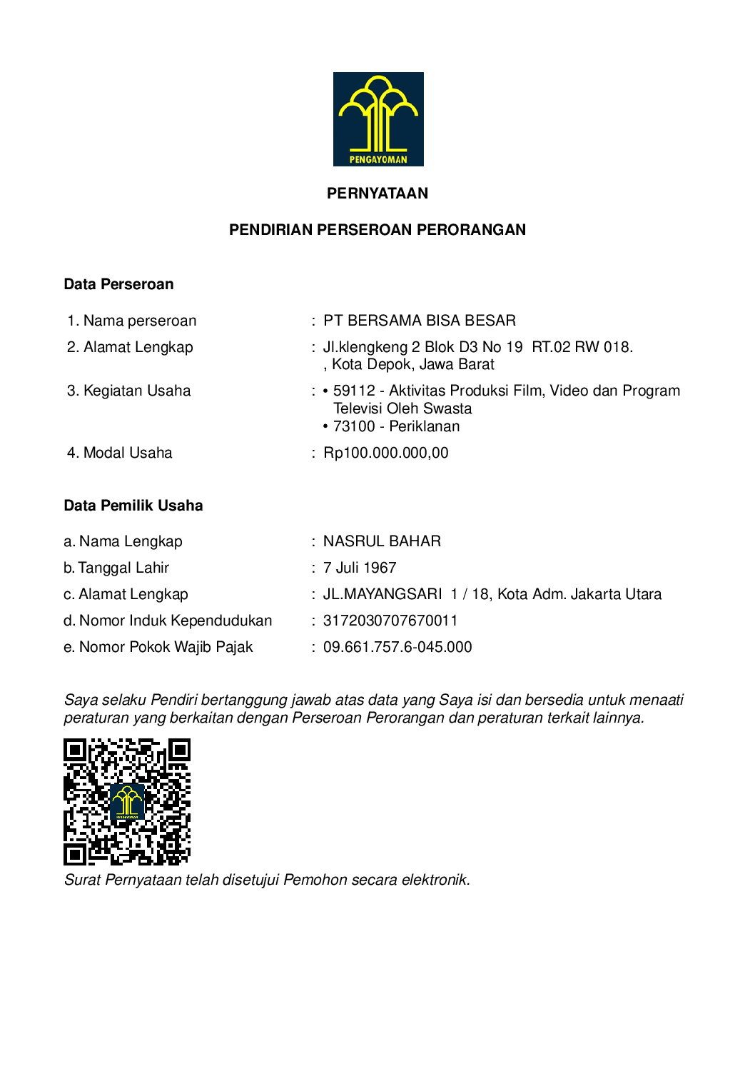 Legalitas PT Bersama Bisa Besar